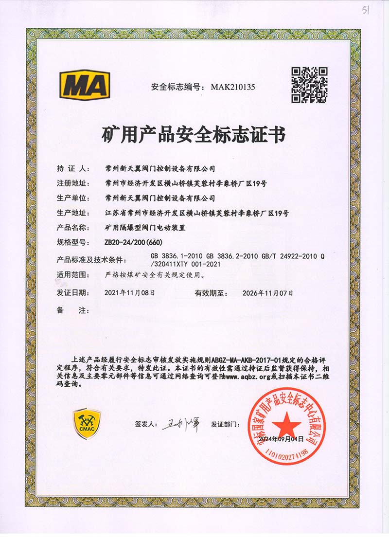 礦用產品安全標志證書ZB20-24 200(660)