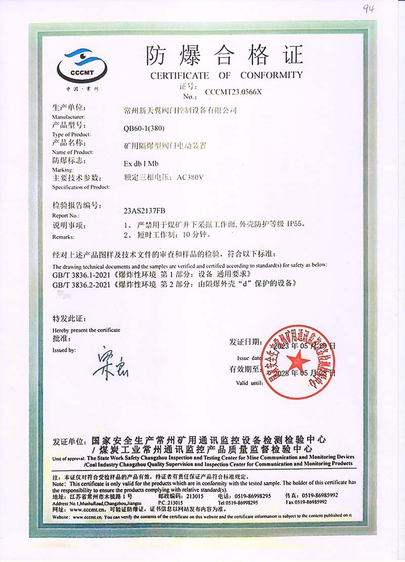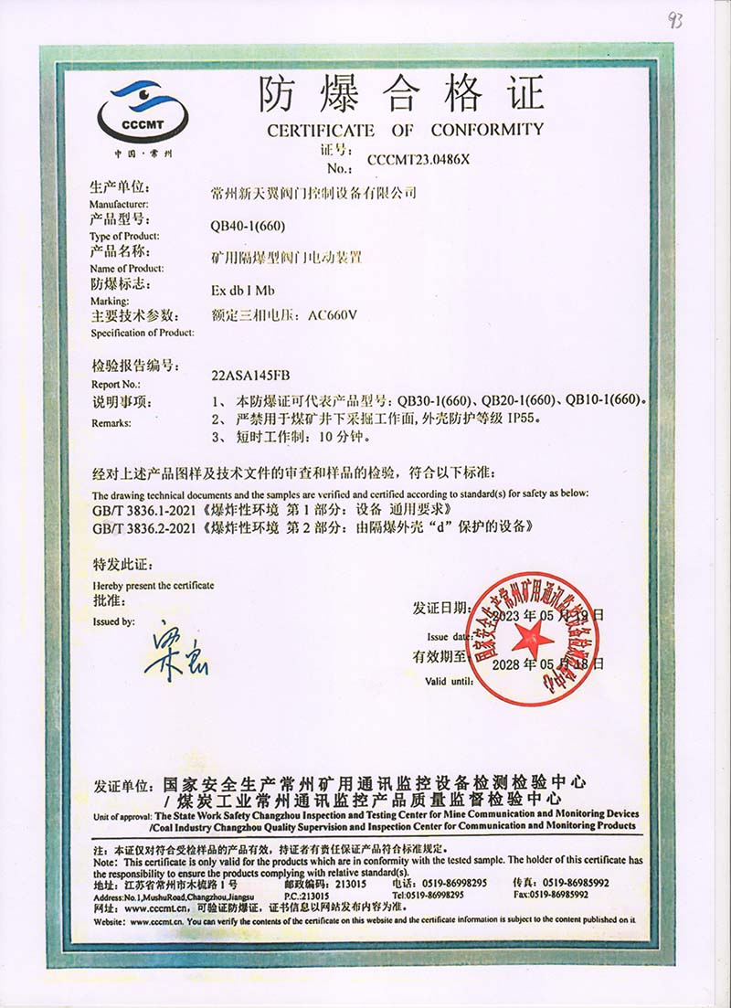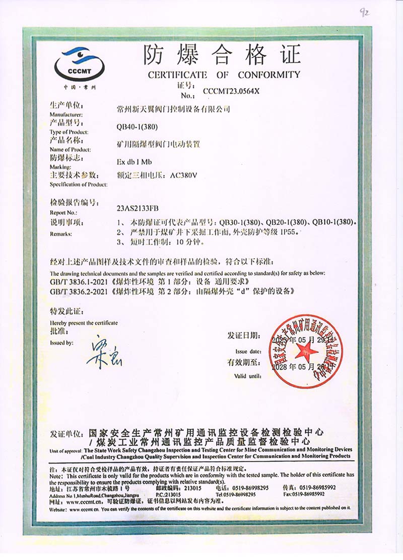 QB90-1(380)防爆合格證