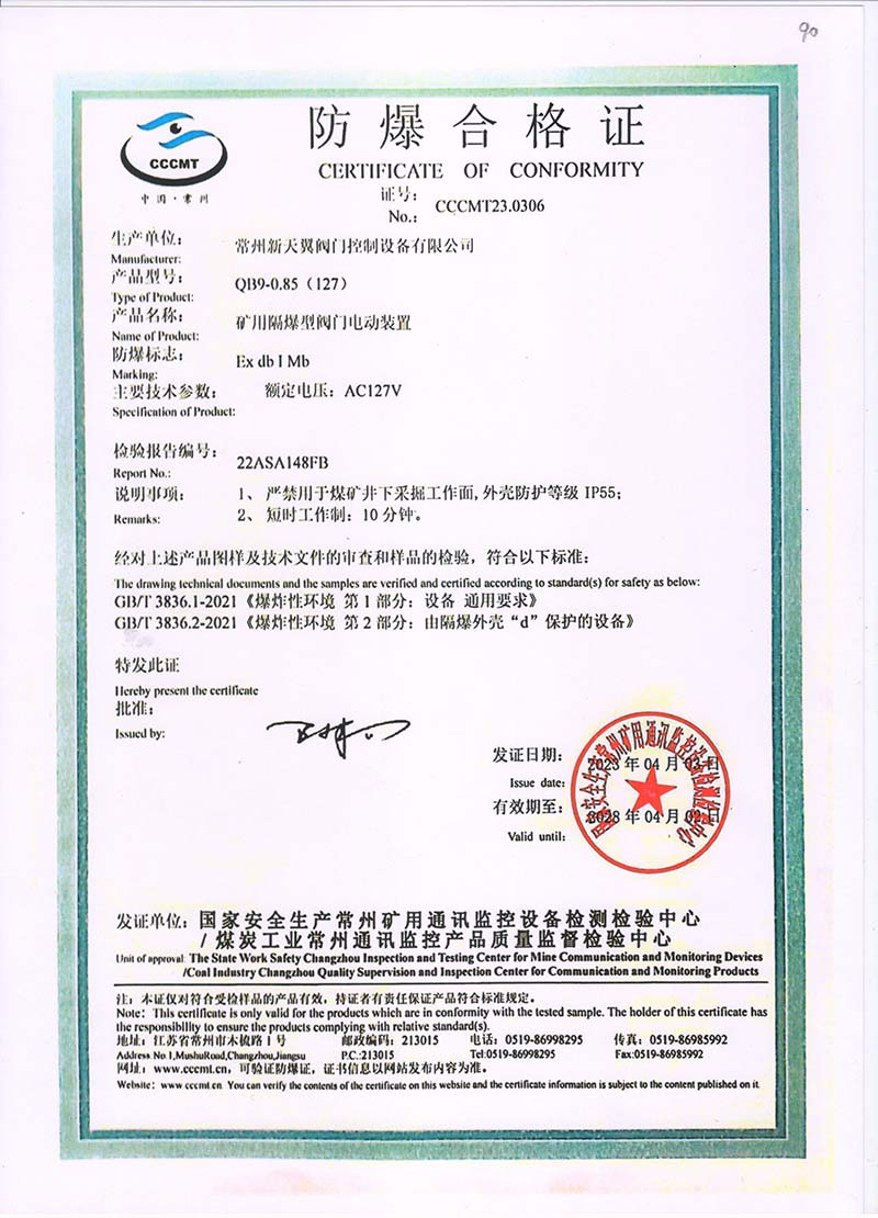 QB9-0.85(127)防爆合格證
