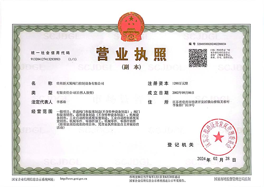 常州新天翼閥門控制設備有限公司